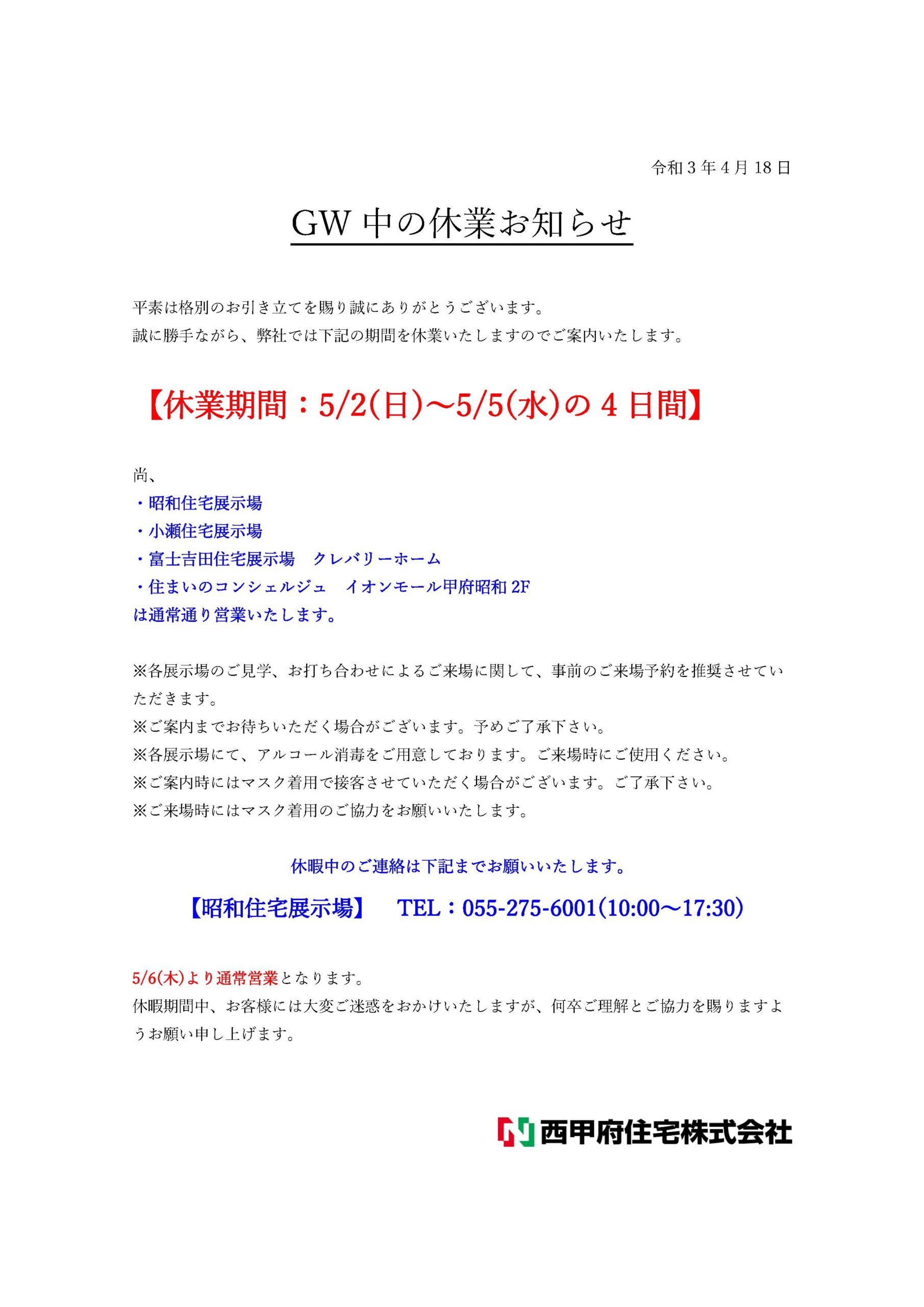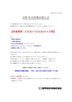 GW休業お知らせ
